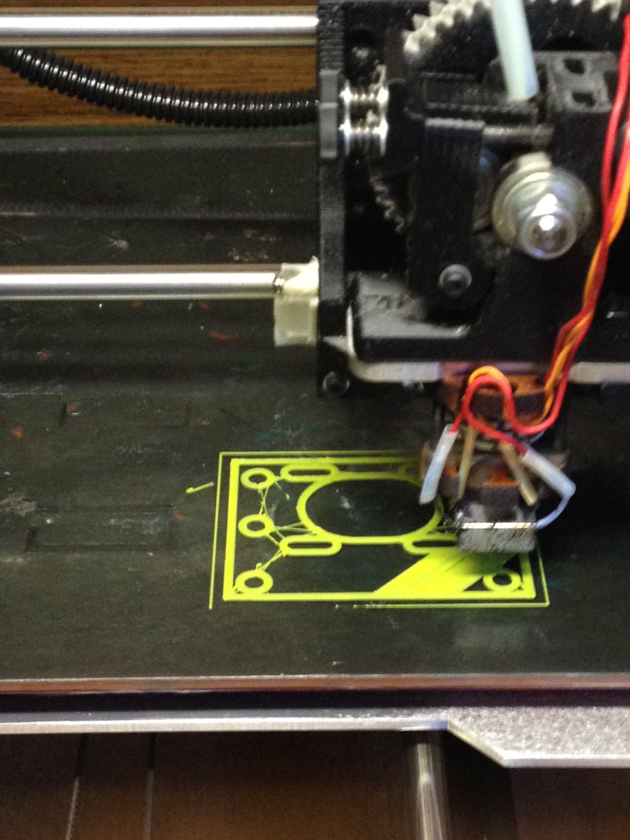 The problem I am seeing is most noticeable on the first layers after it prints around a hole it leaves a string of plastic as is moves to the next section to print. (See attached pic) Currently the retraction settings on the advanced tab are set to Speed 15mm/s and Distance 1.5mm