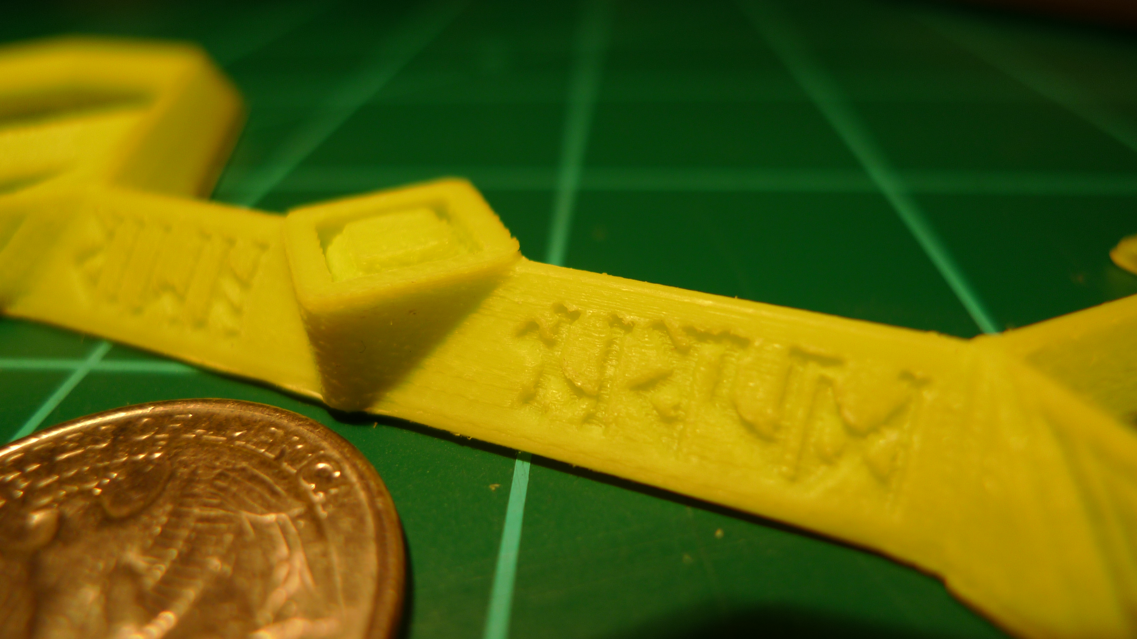 Its printed with a 0.5mm Budaschnozzle 2.0 at 0.05mm layer height in Cura. The key is 12.62mm high (one half) and it took 250 layers to print. It was printed in just 2 hours 20 minutes. :mrgreen: