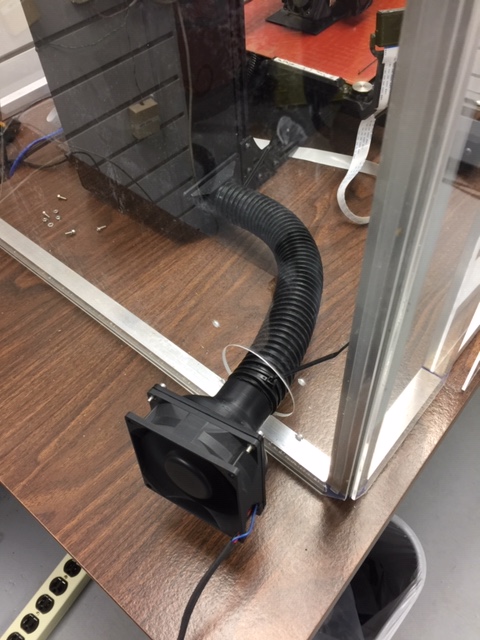 I found and printed adapters from Thingiverse to use 1.25 hose to vent the electronics tower outside the enclosure.