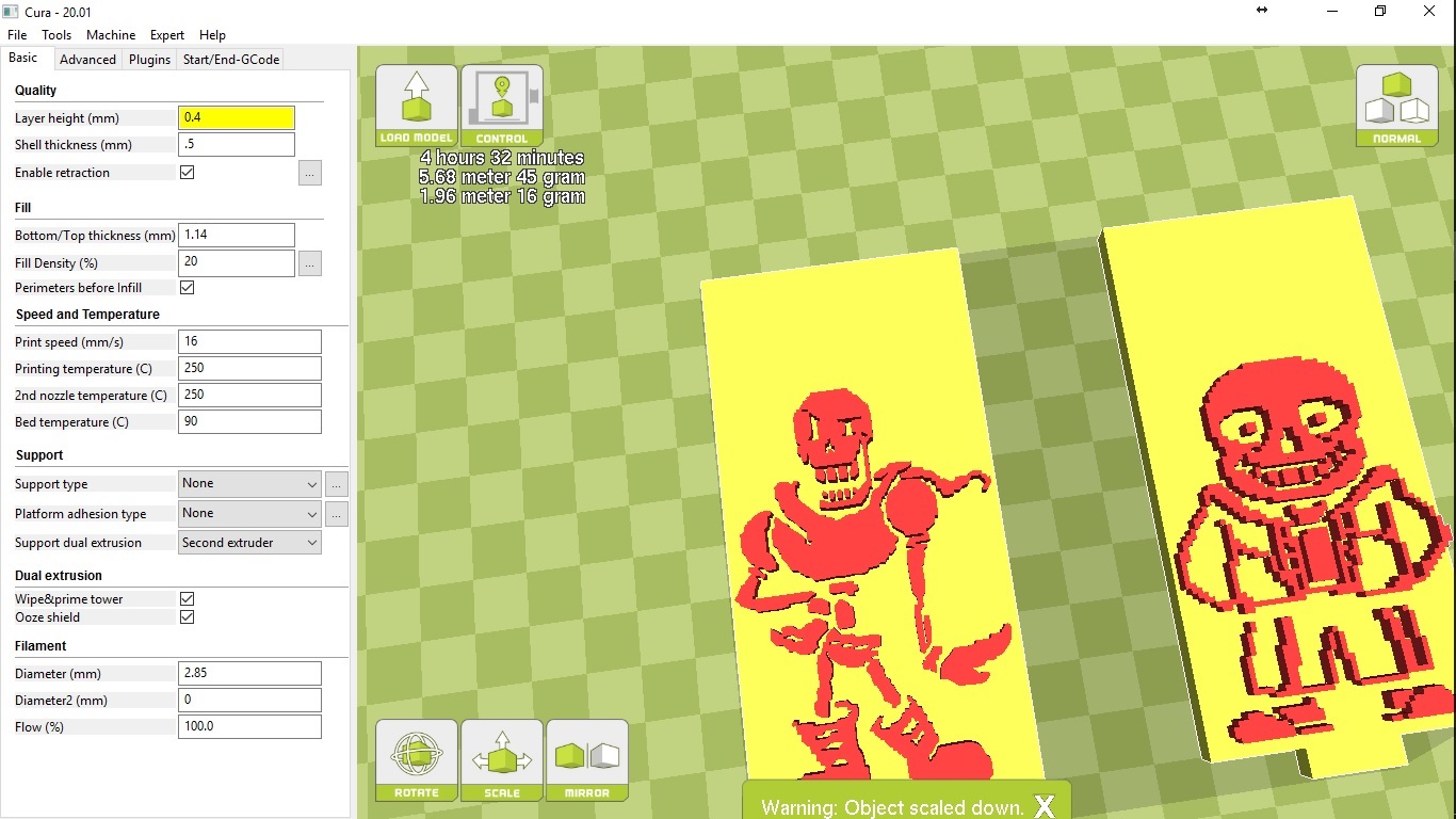 Trying to print some models I made of Sans and Papyrus.
