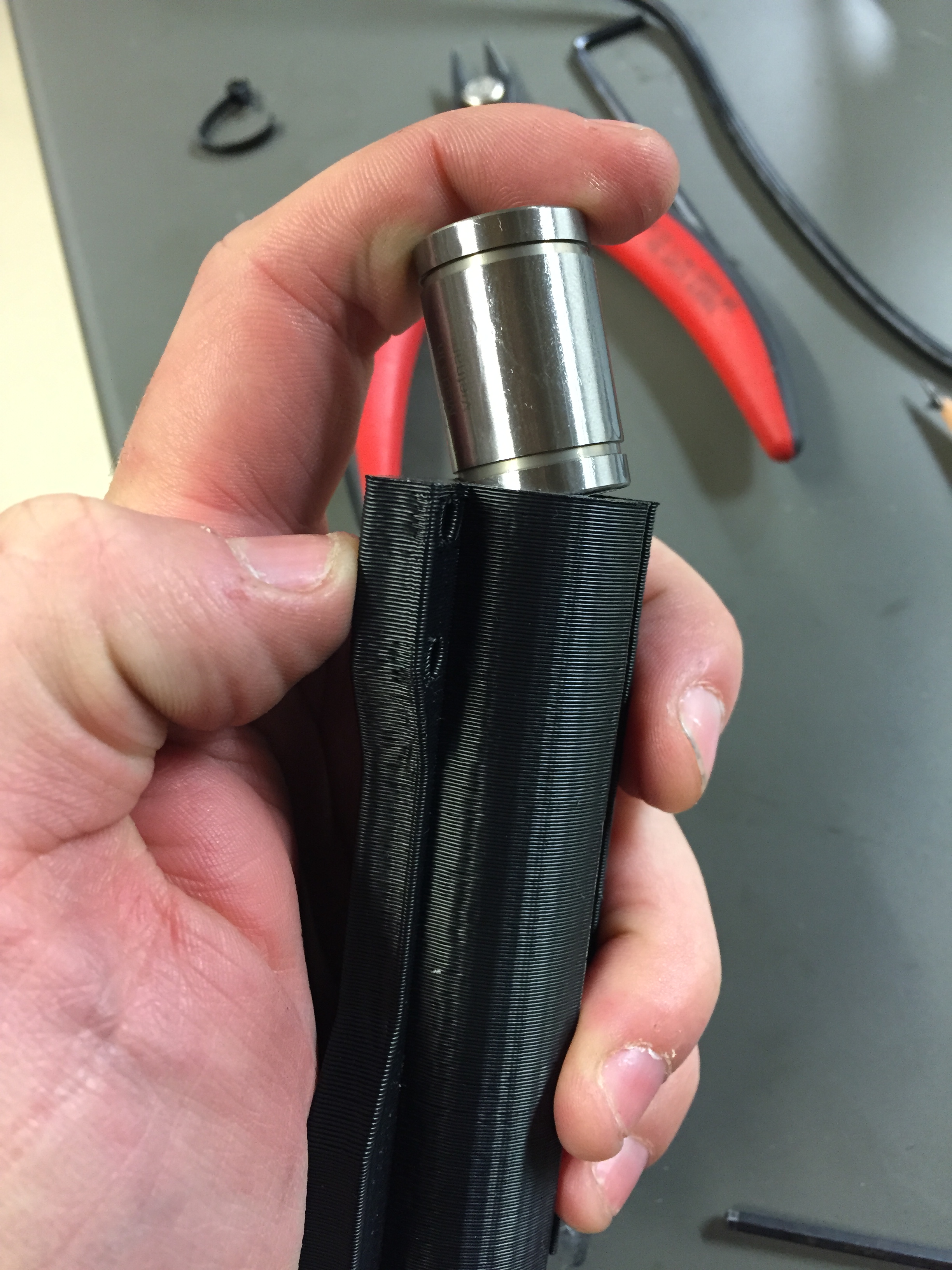 Thanks to all the posts here. I have just made the same bearing & shaft upgrades as erv and the difference is substantial. I wanted to put down how I made the change for others looking to do the same, let me know if I missed something or if something isn’t clear. I understand why Lulzbot uses the polymer IGUS and the soft rails–keeps costs down to stay at the purchase tempting $2G. I was noticing that I was having trouble getting intricate prints to come out super clean. After messing with settings and switching between Slic3r and Cura and back and fourth I figured that maybe something else was going on. I noticed that I would get chatter when the head/bed printed in long fast straight lines–some walls were pretty ugly. I also noticed the scalloping on curves, trying to print gear teeth was almost impossible. I then realized that the nozzle would move around a bit relative to the print and after looking at the X & Y bushings I found a good place to start making improvements. I didn’t change the Z-axis for 2 reasons: 1) it is only loaded in one direction so any backlash issue is mitigated by gravity 2) way more complicated disassembly and re-assembly. I don’t think the effort or gain in print quality would justify replacement.