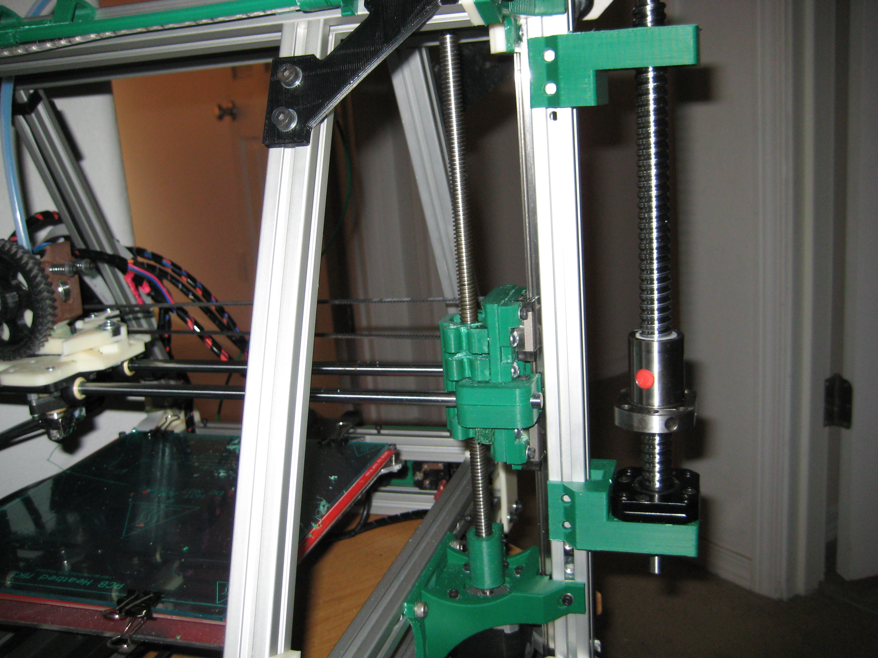 The only original pieces that are in their original locations are the 4 side extrusions, the 4 gantry members, the RAMPS backplate, and the 4 black gantry corner support brackets. And most of the electronics and bolts too I suppose.