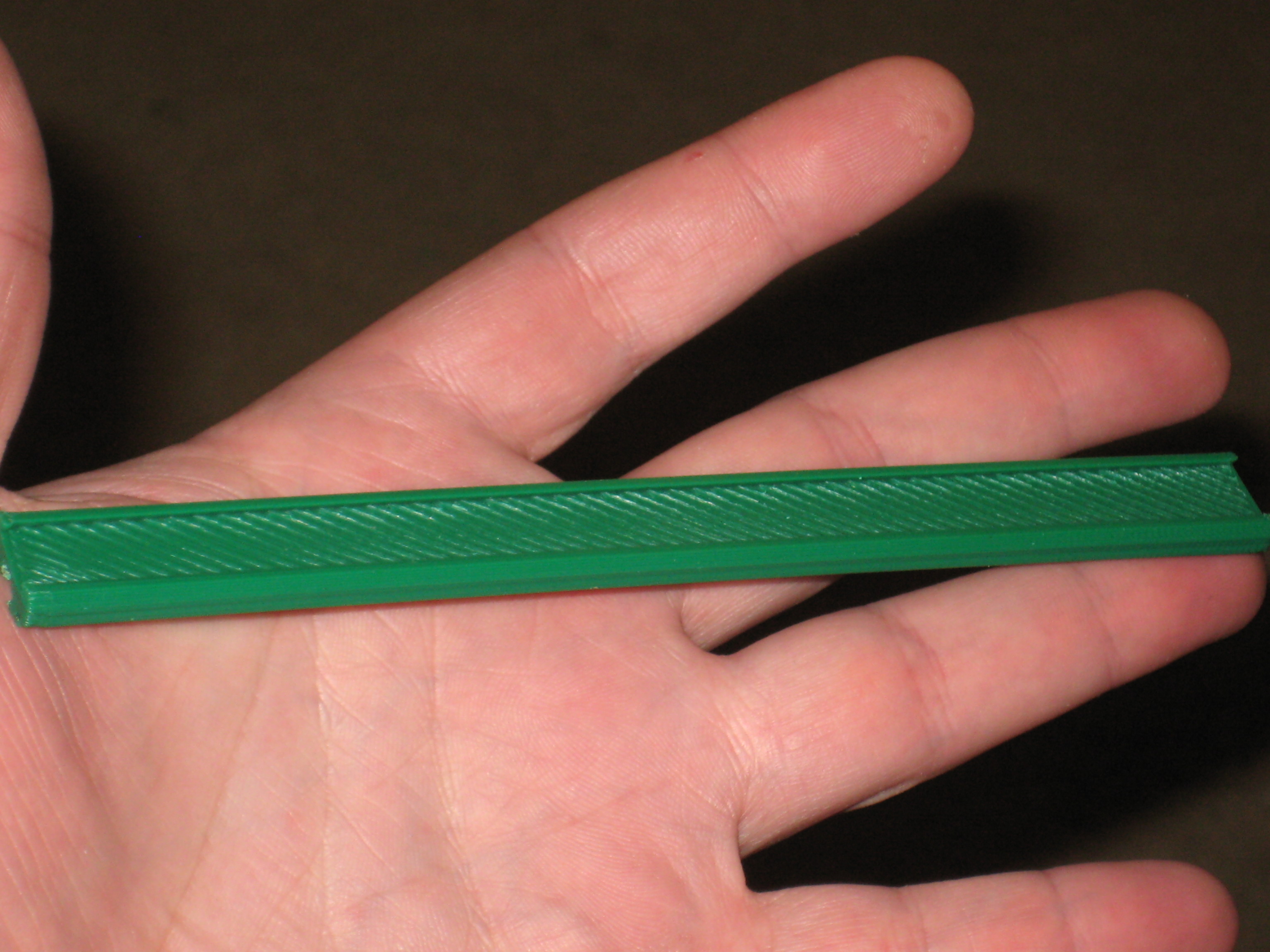 Here’s my first serious attempt at printing something very high quality with this modification. As you can see, there is room for some additional tuning, but it’s not bad for an old AO-100. I do apparently have a slightly bent threaded rod which isn’t helping, but I think the rest of the banding is actually in the carriage and the 8mm carriage rails rather than in the Z movement. I’ll work on them next. The green actually makes the banding look worse than it is though too.