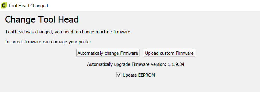 If I loaded the universal firmware would that give me options in my selection of printed head profiles with in Cura?