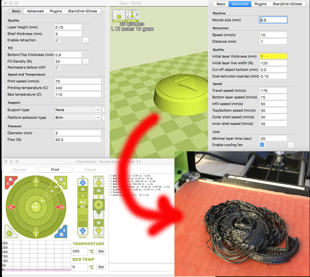 I was never able to get my Mac to print to the Lulzbot Mini. So I used an old PC laptop that, although it limped along, I was able to get it to print a few models. It’s very difficult to use though. I needed to get the Lulzbot Mini to print from my Mac. Finally, in these forums, a guy username, “Firewire” gave a suggestion that totally worked by disabling “csrutil” via terminal, of which I am eternally grateful. (ref: https://forum.lulzbot.com/viewtopic.php?f=8&t=3261&start=40 )