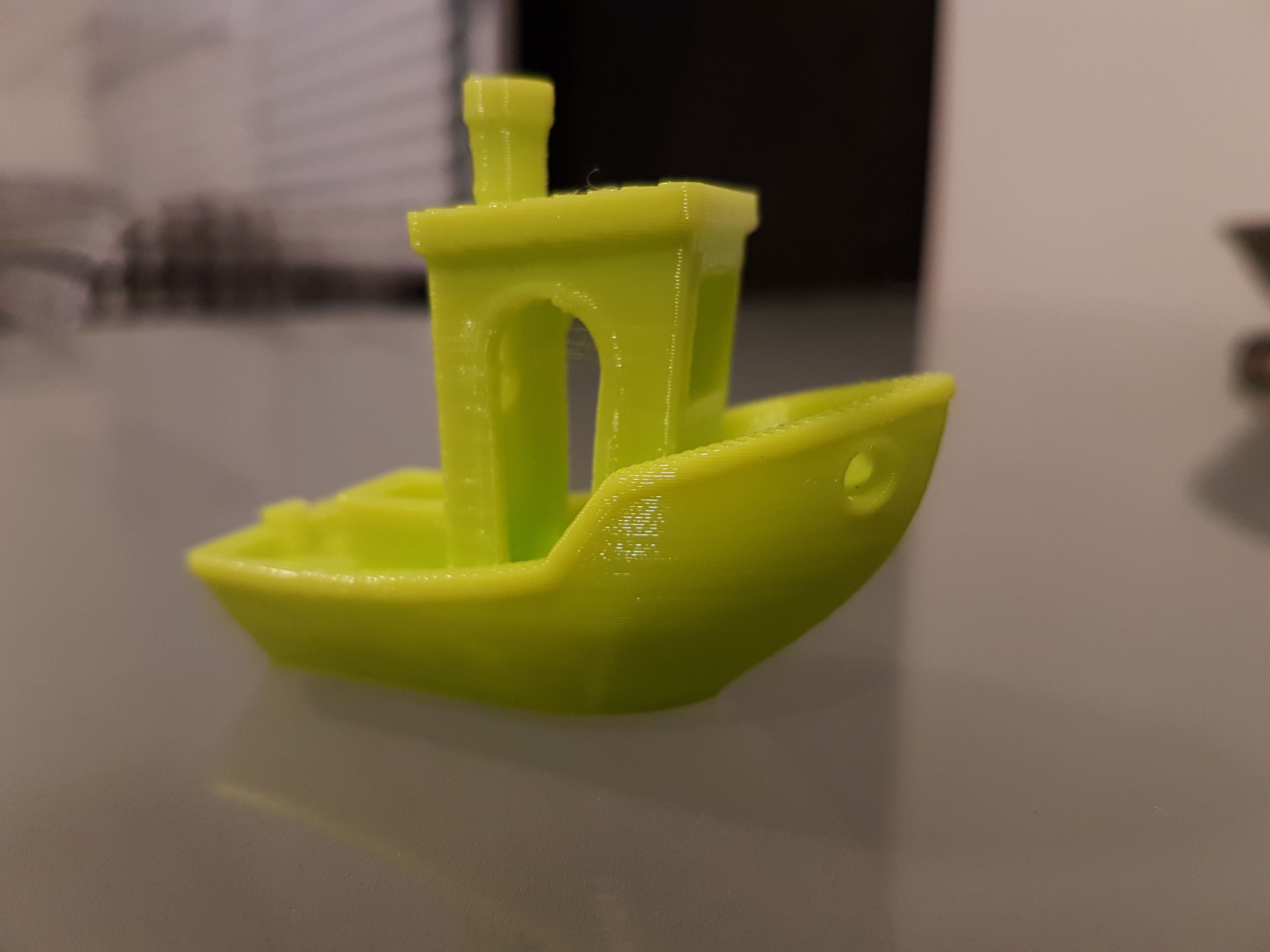After few adjustments (will go over in detail on the next post), printed 3dBenchy straight from SD card. With default settings using NGen filament. Can see the ringing across the hull, but it’s less pronounced. Will be producing an ABS version tomorrow and follow up with the progress.