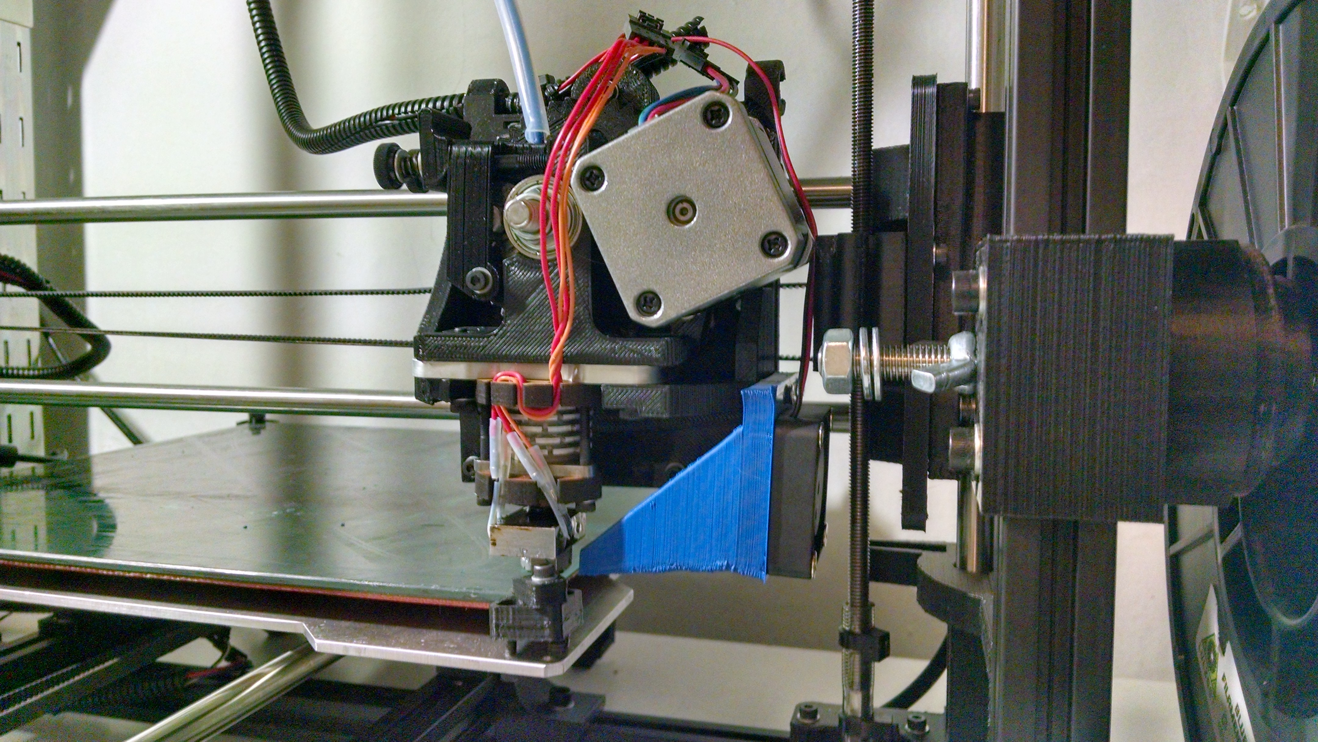 I attached the fan mount using two 16mm long m3 bolts. Had to drill out the holes to get them properly sized. Chicken and egg - I had to print the fan mount without a fan mount, it came out pretty messy. ![]()